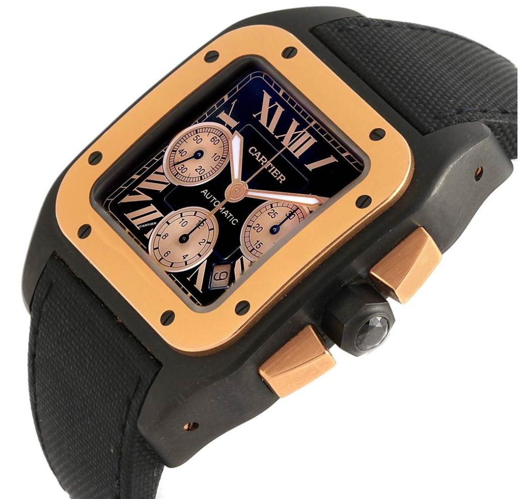 Model Name: Cartier Santos 100 XL Carbon Rose Gold Chronograph Watch W2020004