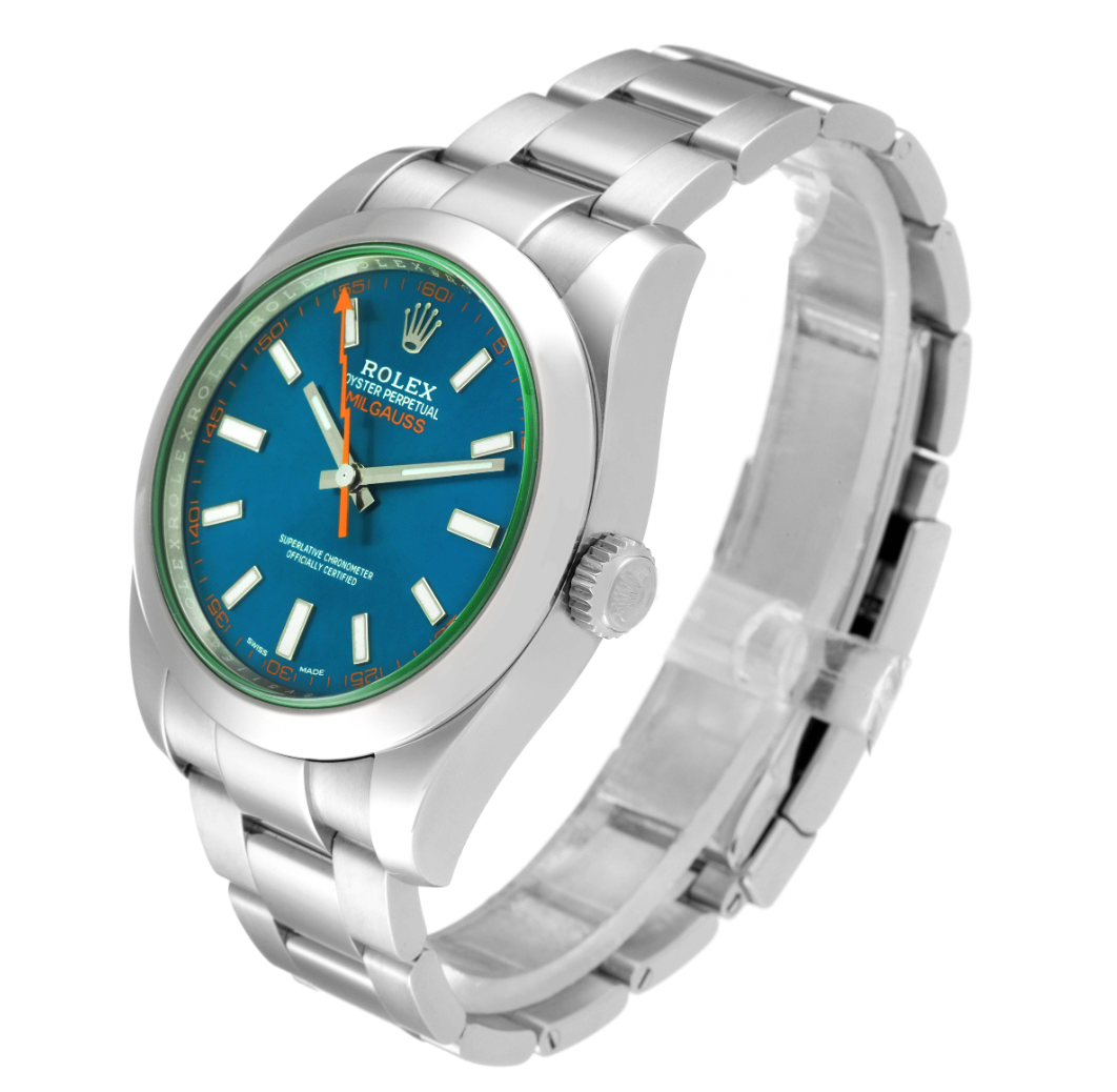| Model Name: | Rolex Milgauss Blue Dial Green Crystal Steel Mens Watch 116400GV Box Card |
