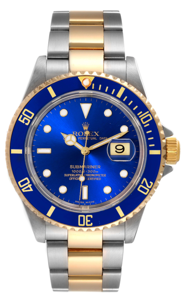 Rolex Submariner Blue Dial Steel Yellow Gold Mens Watch 16613